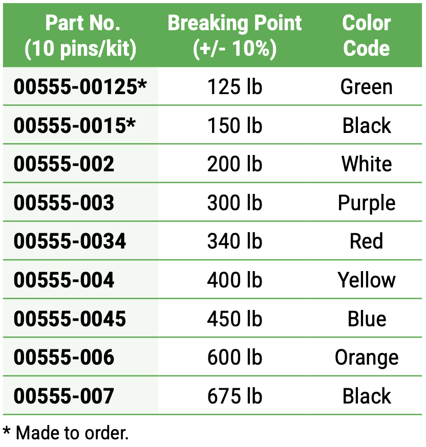 Use of the breakaway connectors and swivels has expanded over the years to include fiber-optic pulling and line-stringing and has been incorporated into some innovative marine and vehicular towing applications. The versatility of this product is its main feature. It can easily be reset from one value to another allowing the same tool to be used for installation of many different duct sizes each requiring different load settings. To reduce fatigue, install the pin to the specified torque. The pin will not experience fatigue when the load is less than the preload value.