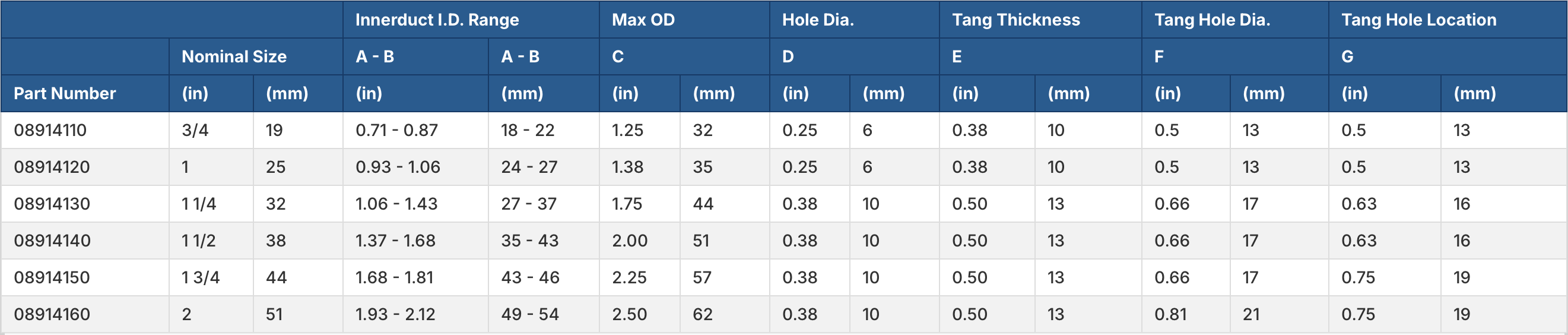 NOTE: To determine correct pulling eye size, obtain the actual innerduct inside diameter (I.D.). The I.D. measurement must be greater than dimension A and smaller than dimension B.
